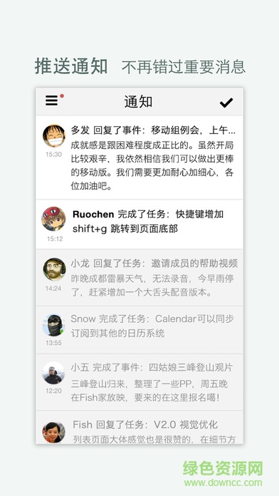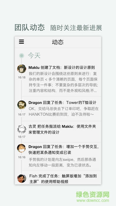 4.迅速回顾团队天天完成的任务,讨论的话题,上传的文件等动态,轻松学会项目进展