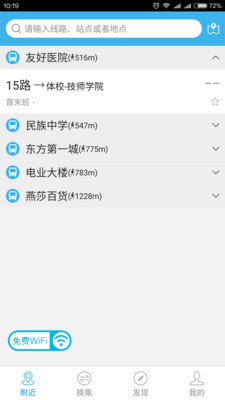 3.基于LBS技术获得附近站点的线路信息,并对线路进行珍藏、换向操作