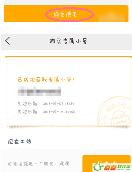 如此你就能用阿里小号获得的专用小号进行免费打电话了哦,不过大伙应该注意这不是长期不收费的哦。