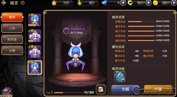 现在S级的精灵只有两只,分别是幸运的蓝鸟与高雅的天鹅。而A级的精灵有7只之多。
