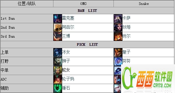 OMG在蓝色方,Snake在紫色方。
