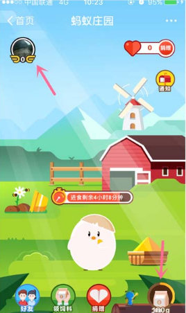 3、蚂蚁庄园的饲料容量是有上限的,小白玩家的容量是540g,伴随大家捐赠次数增多,容量会一直增加,直到1800g。