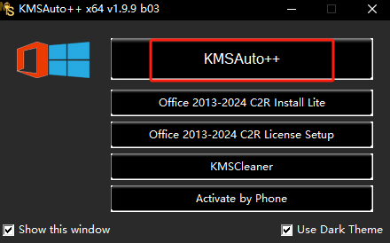 2、弹出激活器主窗口, 单击“KMSAuto++”激活。