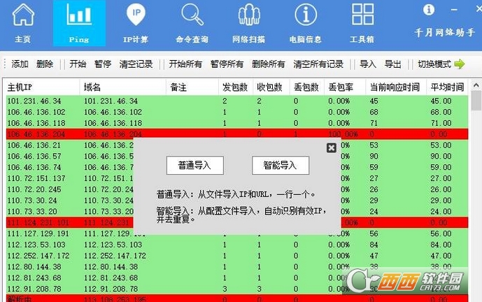 1、高级ping:包括迅速ping,柱状图显示、声音提醒、结果统计、路由跟踪、多ping等功能,很直观便捷。