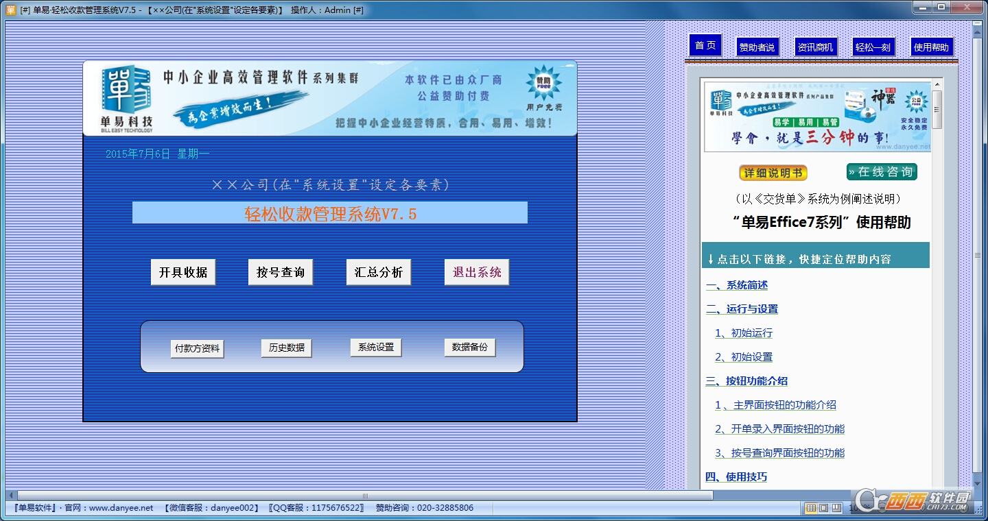 单易轻松收款管理软件系业界首款面向中小微型企业,集信息数据管理、电脑开单、格式套打输出为一体的免费软件。软件以开单智能化为起点,以高效信息管理应用为目的,以具营销传播功能的精美单据输出为特点革新,达到【单证→数据→报表→格式】“四合一 ”的完美结合。Effice7软件致力服务于亿万中小微型企业。解决中小微型企业经营中的信息化与高效管理瓶颈,为最广大企业“零本钱”增加效率与效益。