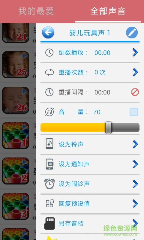 婴儿的声音是一款趣味铃声应用,在这里有很多婴儿的声音资源,一方面可以逗家的小宝贝玩耍,其次还能当做手机铃声来保存孩子的回忆!