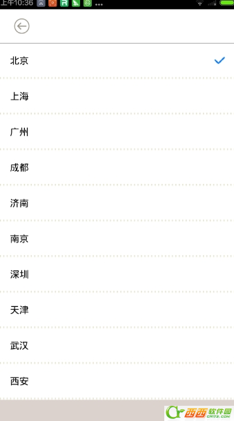 3、大伙可以看到城市包含:北京,上海,广州,成都,济南,南京,深圳,天津,武汉,西安。选择你所在的城市,或者你想关注的城市即可。