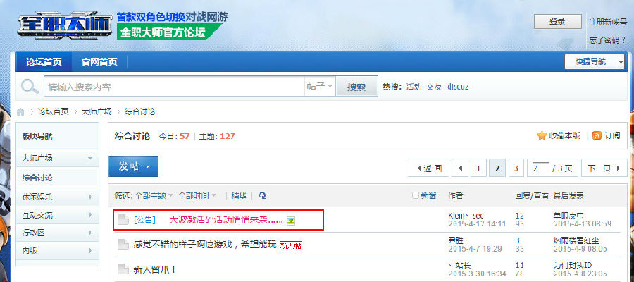 近期全职大师官方平台发布了一篇“一大波激活码活动悄悄来袭.....”的帖子,虽然该帖没具体说明详细的获得办法,不过一定是需要玩家在平台签到肯定时间才有抢码的机会的,另外帖子也发布了全职大师官方的一个粉群,在这里你可以获得游戏的最新资讯,当然也包含激活码,有兴趣的玩家可以试一试。