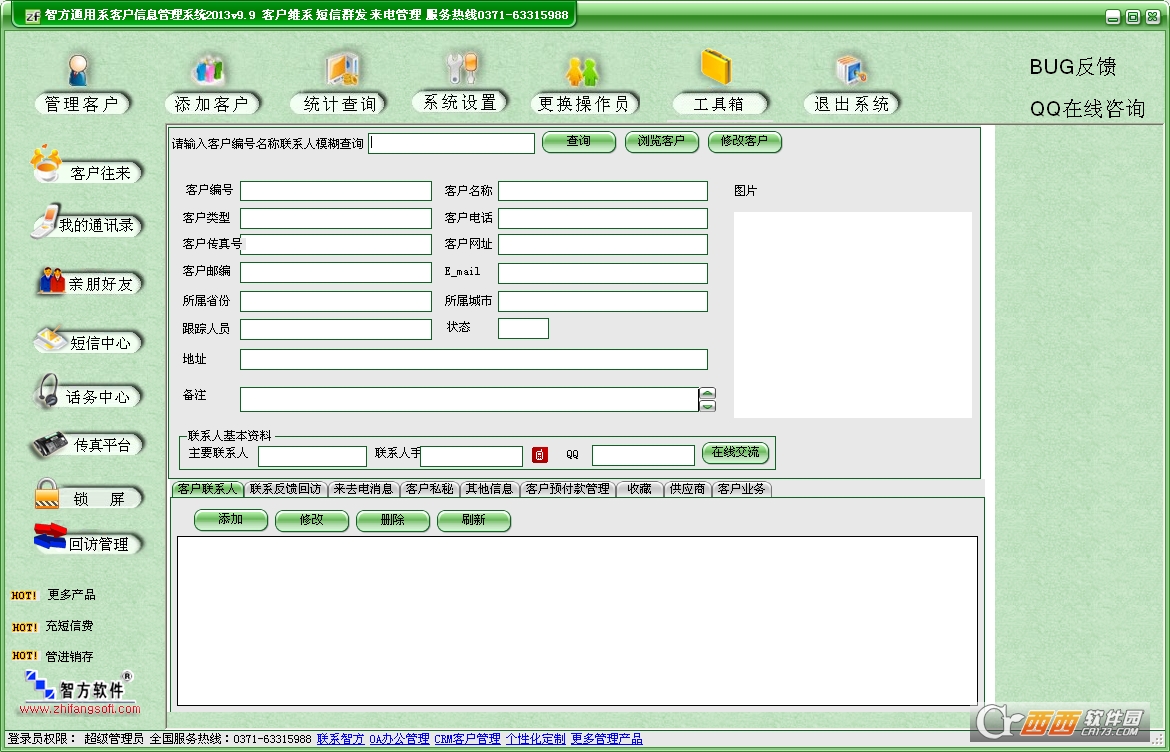 智方会员管理软件是一款简洁、易用、好用的会员管理软件,是智方软件推出的最常用最普及的会员管理工具软件,由智方软件技术团队提供服务支持。会员管理软件单机版本可终身免费用,互联网版本或需更多个性服务可购买正式版。软件功能包括会员管理、添加顾客 、统计查看、系统设置、更换操作员、顾客往来、短信中心、简洁通讯录、便签、计算器。软件界面设计简洁,美观,软件步骤人性化,使普通用户不需培训即可非常快学会软件操作用法,集成的查看统计功能可以满足顾客对有关数据报表的即时查看打印,所有功能均在用户习惯需要的地方自然体现。智方会员管理软件主要面向各种类的企业客服部、销售部等顾客有关管理部门,达成对顾客信息登记,顾客信息查看,顾客消费额,顾客维护费,顾客大全,顾客效益的即时统计,使营运管理者对顾客信息一清二楚,为增强顾客服务工作提供直接依据。智方会员管理软件终身免费版软件是广大经营者推行会员管理的最常用手边工具!