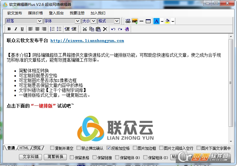 博久网软文编辑器Plus提供文章迅速格式化一键排版功能,可帮助你迅速格式化文章,使之成为合乎规范和标准的文章格式,能有效提升编辑工作效率。